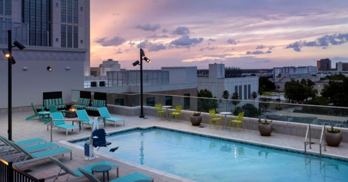 Hilton Garden Inn Orlando Downtown se află la 15 minute de mers pe jos de Gara Church Street și la 1,6 km de Amway Center.