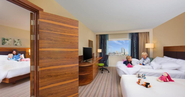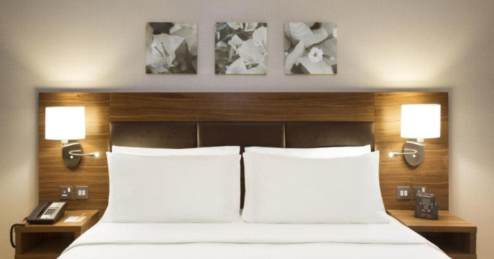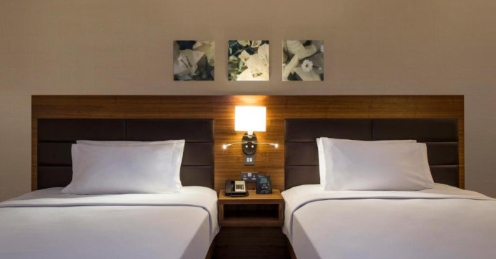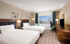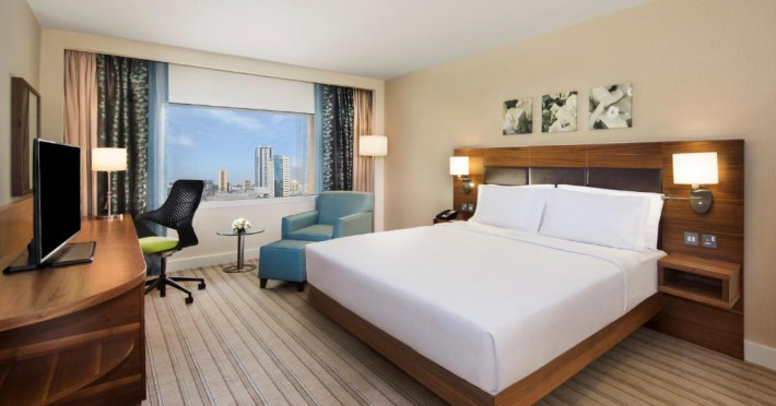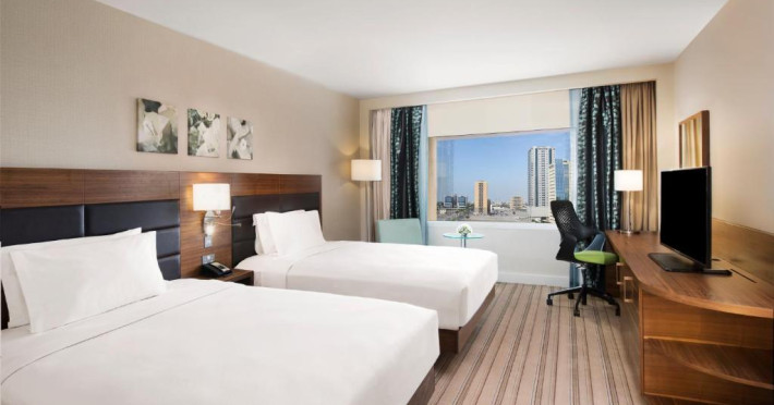 Camerele luminoase de la Hilton Garden Inn - Ras Al Khaimah sunt dotate cu mochetă, aer condiționat, Tv cu canale prin satelit și seif. Oaspeții au la dispoziție serviciul de room service pentru a servi masa sau diverse băuturi. Unele camere au vedere oraș. Oaspeții au acces gratuit la serviciul Wi-fi în camere. În camere există baie cu cadă sau duș ce are în dotare foehn și articole de toaletă gratuite. Curățenia in cameră se face zilnic. Proprietatea oferă camere pentru familie cu o suprafață mai mare și un număr mai mare de paturi față de cele standard.