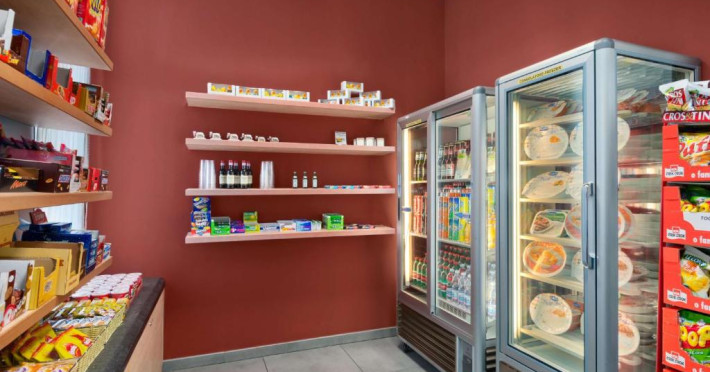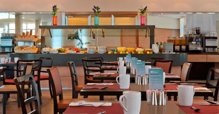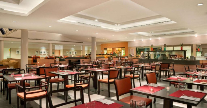 In fiecare zi este disponibil un mic dejun bogat tip bufet cu produse dulci și sărate. Restaurantul servește preparate din bucătăria tradițională italiană la pranz și cină. Oaspeții pot folosi camera cu microunde pentru a pregăti mancăruri gata de gătit vandute la magazinul Pavilion Pantry.