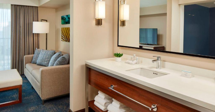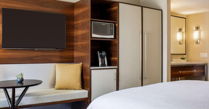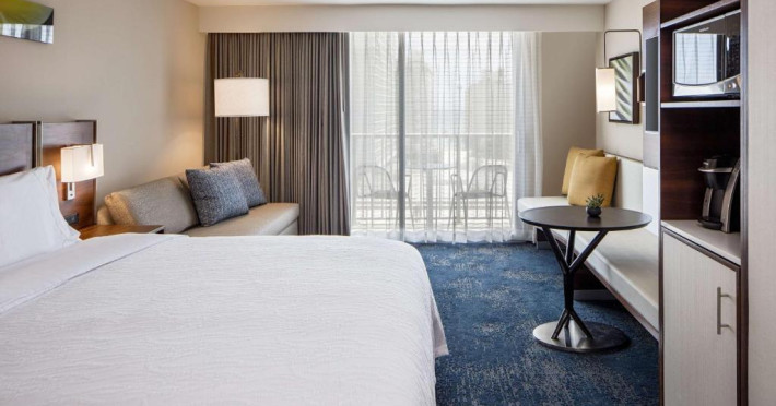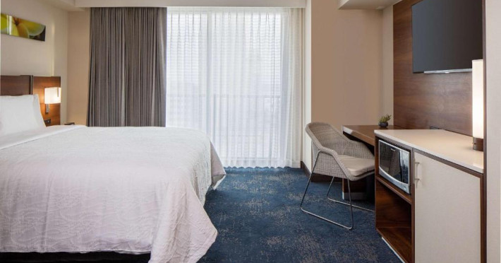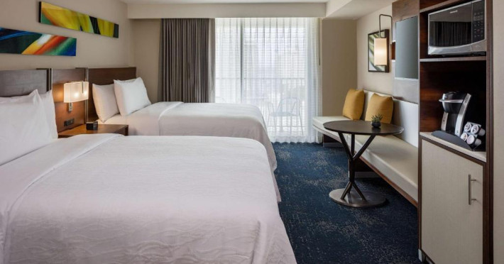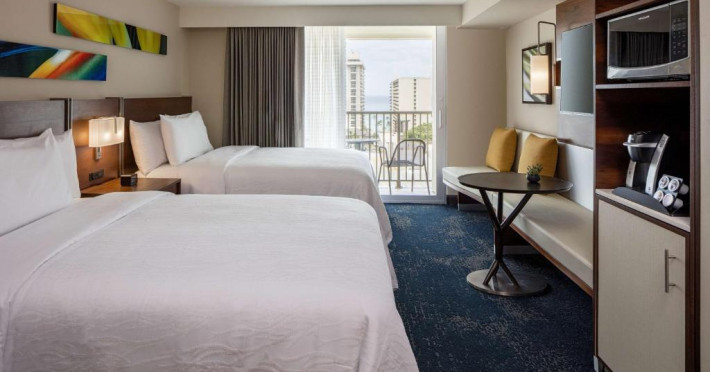 Toate camerele de la Hilton Garden Inn Waikiki Beach beneficiază de aer condiționat, de acces gratuit la internet WiFi și de un TV cu ecran de 48 inch cu canale prin cablu. Unele camere au balcon mobilat. Sunt oferite diverse precum și aparate de cafea Keurig, cuptor cu microunde și frigidere de mici dimensiuni.