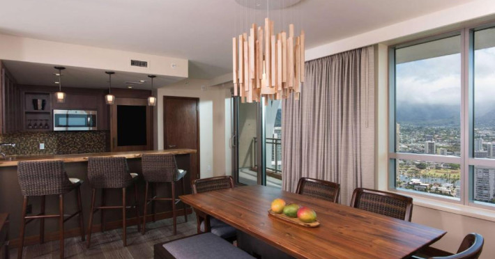 90 de magazine sunt disponibile pentru oaspeți, precum și peste 20 de restaurante cu o mare varietate de preparate culinare oferite. Oaspeții au, de asemenea, acces la spectacolul de artificii Waikiki Starlight Luau și vineri seara, Clubul pentru copii Camp Penguin, mai multe sporturi nautice și recreere, Mandara Spa, minipiscină in aer liber, terasă la soare, cadă cu hidromasaj și centrul de fitness. Serviciul complet de concierge este oferit.