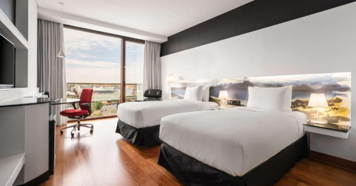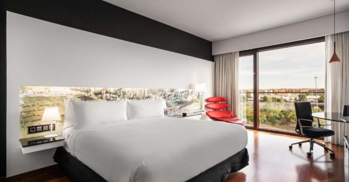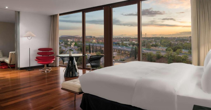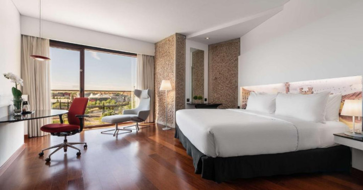 Hilton Madrid Airport este situat intr-o clădire emblematică concepută pentru a fi un hotel grozav care este conectat la Madrid și conectat la lume, deschizand ușa către posibilități nesfarșite.