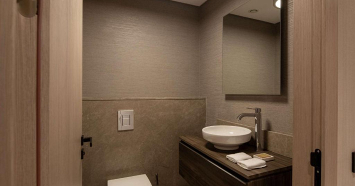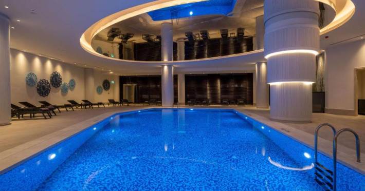 Proprietatea are o piscină interioară, un salon de coafură și un centru de afaceri.