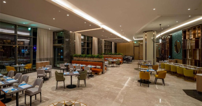 La proprietate este servit in fiecare dimineață un mic dejun continental și tip bufet. Restaurantul Kuzine este deschis pe toată durata zilei și servește preparate internaționale și turcești. Barul din hol are o zonă de relaxare și o terasă de iarnă cu vedere la oraș.