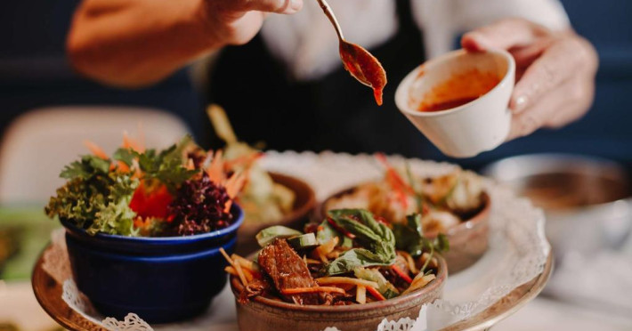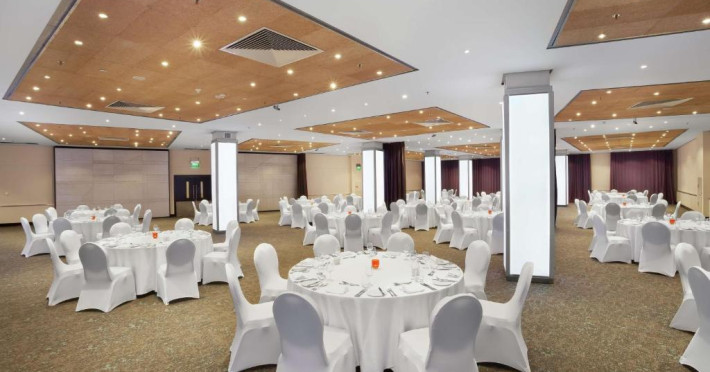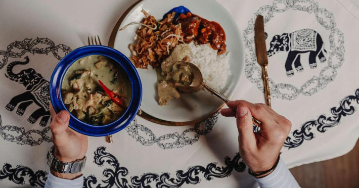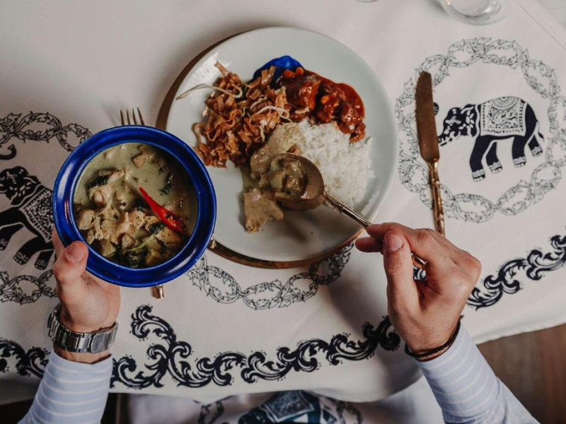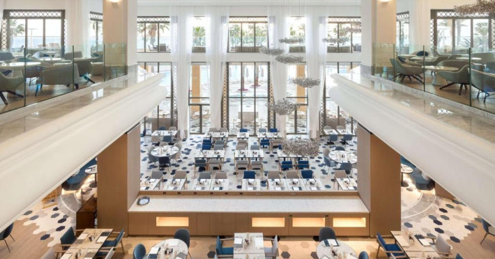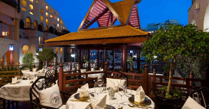 Restaurantul Oceana al hotelului servește cina langă piscină, iar restaurantul Blue Elephant este specializat in preparate din bucătăria thailandeză. Micul dejun este tip bufet.