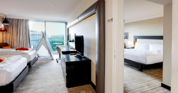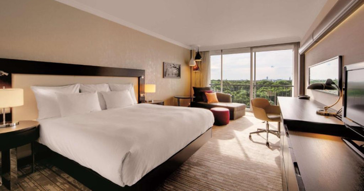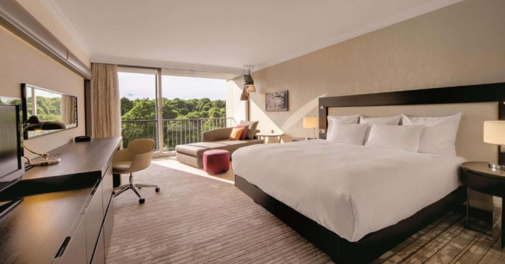 Oferind balcon cu vedere panoramică, camerele de la Hilton Munich Park sunt echipate cu aer, minibar și TV cu ecran plat. Room service este disponibil non-stop. Accesul la WiFi este disponibil la un cost suplimentar.