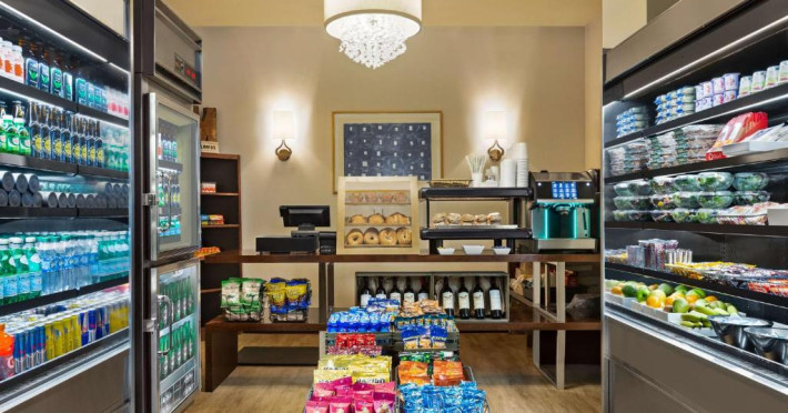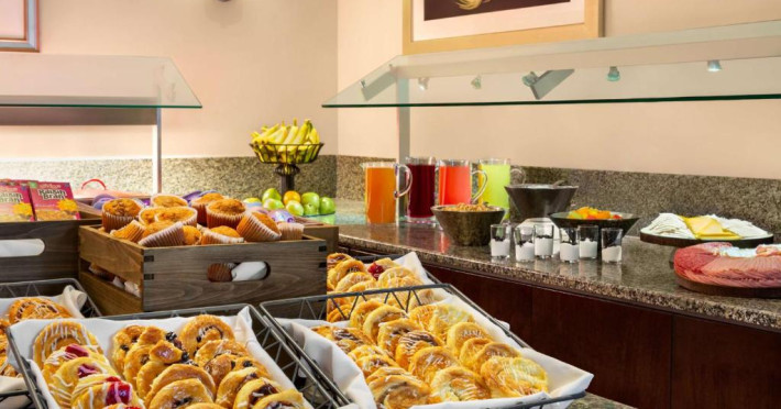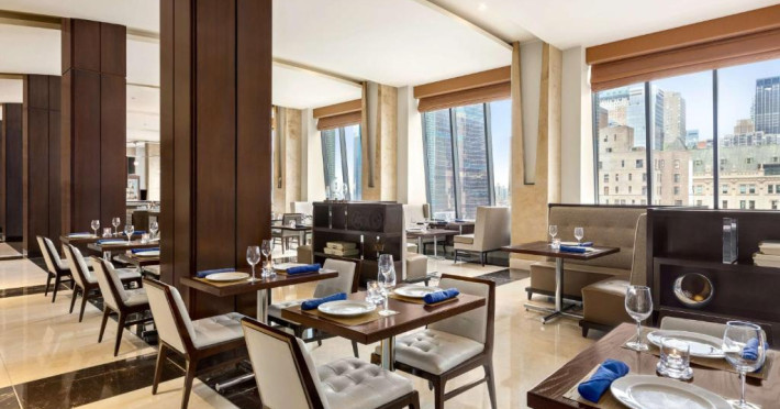 Oaspeții de la Hilton New York Times Square se pot bucura de un mic dejun à la carte sau american. La unitatea de cazare veți găsi un restaurant care servește preparate din bucătăria americană. Pot fi solicitate și opțiuni vegetariene, vegane și fără gluten.