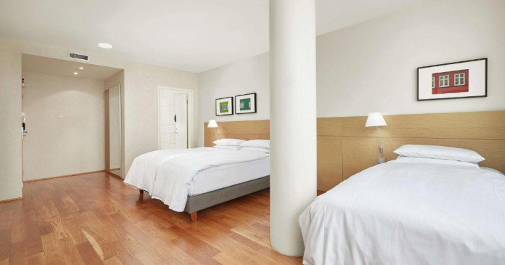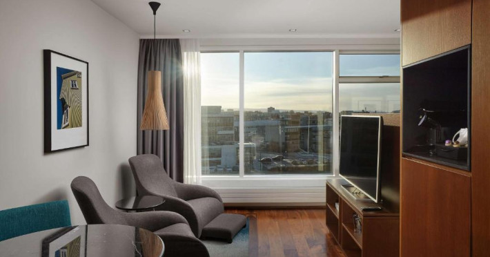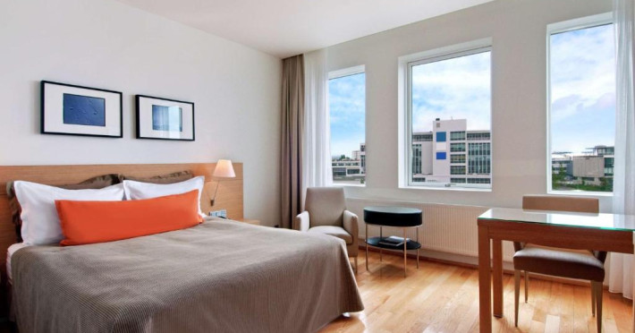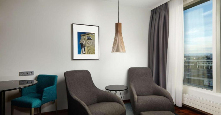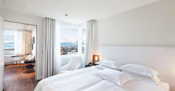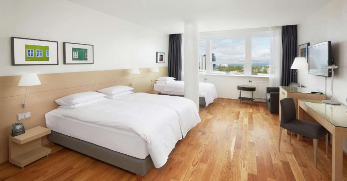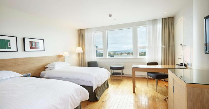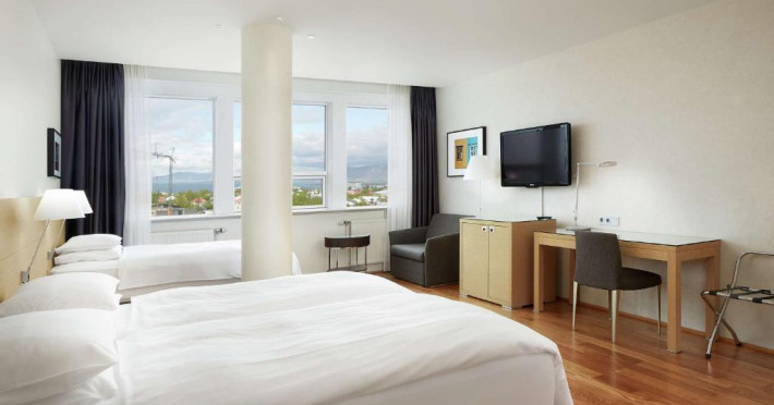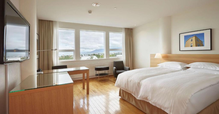 Camerele luminoase de la Hilton Reykjavik Nordica au podea din lemn, TV cu ecran plat și facilități pentru prepararea de ceai/cafea. Multe oferă vedere la Munții Akrafjall și Esja sau la Golful Faxaflói.
