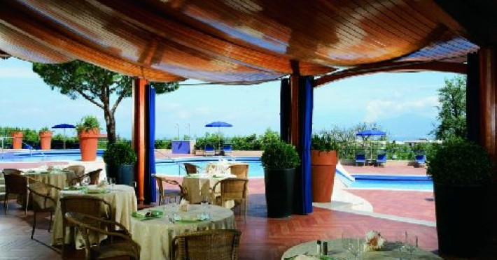 Descriere: Hotelul este situat pe coasta nordica a peninsulei Sorrentine, inconjurat de livezi de lamai si portocali, cu vedere spre orasul Sorrento, Golful Napoli si spre Muntele Vezuviu.