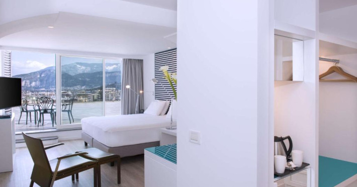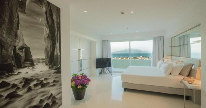 Micul dejun este oferit zilnic, iar restaurantul panoramic servește specialități mediteraneene și salate.