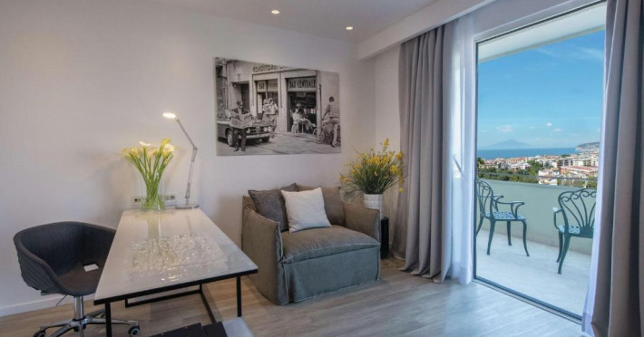 Camerele de la Sorrento Palace, de 4 stele, au TV prin satelit, minibar și baie privată cu uscător de păr și articole de toaletă gratuite. Unele camere au balcon cu vedere la Marea Tireniană, unele au vedere la grădină.