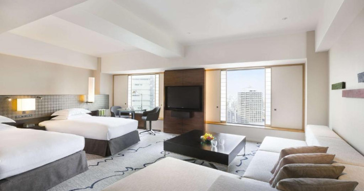 Camerele de la Tokyo Hilton sunt decorate elegant și oferă vedere la zona cosmopolită Shinjuku. Oaspeții pot savura o băutură din minibar și se pot bucura de canale prin satelit pe televizorul lor LCD. De asemenea, se oferă WiFi gratuit.