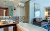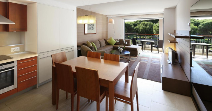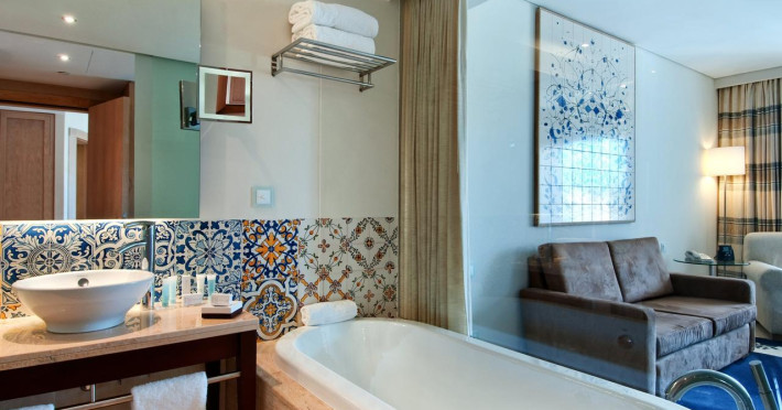The apart hotel Hilton Vilamoura As Cascatas Golf Resort & Spa is located approximately 6 km from the sea. The old town is around 15 km away. A supermarket is around 800 m away. There is a shuttle between the hotel and the airport (for a fee) - transfer time around 25 minutes. Nearby there is a golf course which offers entertainment in high season. On the beach are cushions, sun umbrellas and beach towels available. To reach the beach a shuttle is provided. The air-conditioned hotel is equipped with a 24h reception (check-in is possible around the clock), a lobby, Wi-Fi, internet access, a lift, a shop, a hairdresser, a first aid kit, parking spaces as well as a TV lounge with satellite TV. In the outdoor area you will find a garden as well as a pool (open all year), where pool towels are available for free. There is also a children's pool. Furthermore, outside you can find a terrace. Inside the hotel you can use a heated indoor pool. Your valuables can be stored in the hotel safe. In addition, the hotel Hilton Vilamoura As Cascatas Golf Resort & Spa is video-monitored 24h a day. For the young hotel guests there is a playground. For very young guests, kid`s chairs can also be provided. There is also a laundry service. Ironing equipment can be borrowed at the hotel. For your comfort there is a concierge service. If necessary, you can contact the medical centre at any time. The energy supply is 220 Volts. For conventions and other business meetings, the hotel offers a business centre as well as a conference area with a reception, printer, fax, scanner as well as a catering service. If you want to explore the holiday region, you can use the car and motorbike rental service close to the hotel. In addition, the hotel sells tickets excursions. Pets like cats and dogs are allowed in the hotel (on request) . For guests on their honeymoon, the hotel has special offers such as a romantically-decorated room, personalised rooms/articles, rooms with a particularly romantic location and view, special honeymoon packages, an extra large king size bed, champagne, sparkling wine, a present, a basket of fruit or flowers in the room. In your hotel, a lot of focus is placed on sustainability. This includes waste segregation in the rooms, the hotel`s own recycling bins, the provision of soap, shampoo and lotion dispensers, environmentally-friendly cleaning and the use of a closed-water circuit. That is why the hotel Hilton Vilamoura As Cascatas Golf Resort & Spa was also awarded a sustainability certificate. The hotel requires that all guests pay a deposit upon arrival. Euro/Master Card is accepted as means of payment. Due to its barrier-free facilities , such as a revolving door in the entrance area, a hotel door that can be opened manually, barrier-free entrances, wheelchair accessible rooms, a wheelchair accessible lift, a handrail in the elevator and wheelchair-accessible bathrooms, the hotel is also suitable for wheelchair users. Catering As catering services the hotel offers half board. Breakfast is offered American, continental or from the buffet. Enjoy your lunch as a set meal. Dinner is served à la carte. For the meals, there are 2 bars as well as the pool bar. For dinner, guests are asked to wear appropriate clothing in the restaurant. Distances