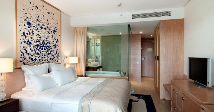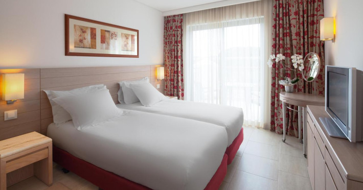 The apart hotel Hilton Vilamoura As Cascatas Golf Resort & Spa is located approximately 6 km from the sea. The old town is around 15 km away. A supermarket is around 800 m away. There is a shuttle between the hotel and the airport (for a fee) - transfer time around 25 minutes. Nearby there is a golf course which offers entertainment in high season. On the beach are cushions, sun umbrellas and beach towels available. To reach the beach a shuttle is provided. The air-conditioned hotel is equipped with a 24h reception (check-in is possible around the clock), a lobby, Wi-Fi, internet access, a lift, a shop, a hairdresser, a first aid kit, parking spaces as well as a TV lounge with satellite TV. In the outdoor area you will find a garden as well as a pool (open all year), where pool towels are available for free. There is also a children's pool. Furthermore, outside you can find a terrace. Inside the hotel you can use a heated indoor pool. Your valuables can be stored in the hotel safe. In addition, the hotel Hilton Vilamoura As Cascatas Golf Resort & Spa is video-monitored 24h a day. For the young hotel guests there is a playground. For very young guests, kid`s chairs can also be provided. There is also a laundry service. Ironing equipment can be borrowed at the hotel. For your comfort there is a concierge service. If necessary, you can contact the medical centre at any time. The energy supply is 220 Volts. For conventions and other business meetings, the hotel offers a business centre as well as a conference area with a reception, printer, fax, scanner as well as a catering service. If you want to explore the holiday region, you can use the car and motorbike rental service close to the hotel. In addition, the hotel sells tickets excursions. Pets like cats and dogs are allowed in the hotel (on request) . For guests on their honeymoon, the hotel has special offers such as a romantically-decorated room, personalised rooms/articles, rooms with a particularly romantic location and view, special honeymoon packages, an extra large king size bed, champagne, sparkling wine, a present, a basket of fruit or flowers in the room. In your hotel, a lot of focus is placed on sustainability. This includes waste segregation in the rooms, the hotel`s own recycling bins, the provision of soap, shampoo and lotion dispensers, environmentally-friendly cleaning and the use of a closed-water circuit. That is why the hotel Hilton Vilamoura As Cascatas Golf Resort & Spa was also awarded a sustainability certificate. The hotel requires that all guests pay a deposit upon arrival. Euro/Master Card is accepted as means of payment. Due to its barrier-free facilities , such as a revolving door in the entrance area, a hotel door that can be opened manually, barrier-free entrances, wheelchair accessible rooms, a wheelchair accessible lift, a handrail in the elevator and wheelchair-accessible bathrooms, the hotel is also suitable for wheelchair users. Catering As catering services the hotel offers half board. Breakfast is offered American, continental or from the buffet. Enjoy your lunch as a set meal. Dinner is served à la carte. For the meals, there are 2 bars as well as the pool bar. For dinner, guests are asked to wear appropriate clothing in the restaurant. Distances- Discotheque: approx. 3 km