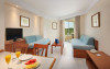 The aparthotel Aparthotel Hipotels Bahia Grande is located approximately 150 m from a beach. The nearest shops you can reach within around 100 m, a supermarket is just a few metres away from the hotel. There is a shuttle between the hotel and the airport (for a fee). On the beach are sun umbrellas available. The hotel is equipped with Wi-Fi as well as internet access. In the outdoor area you will find a pool (open all year), where you can rent pool towels for a fee. There is also a children's pool. Inside the hotel you can use an indoor pool. For very young guests, kid`s chairs can be provided. There is also a laundry service available at an additional cost to customers. If necessary, you can contact the medical centre (for a fee). If you want to explore the holiday region, you can use the car rental service close to the hotel (extra fee). At the reception, tickets are offered for excursions in the area. Euro/Master Card and Visa are accepted as means of payment. Due to its barrier-free facilities , such as barrier-free entrances, the hotel is also suitable for wheelchair users. Catering Breakfast is offered from the buffet. Dinner is also served as a buffet. Distances- Nearest bank: approximately at 300 m