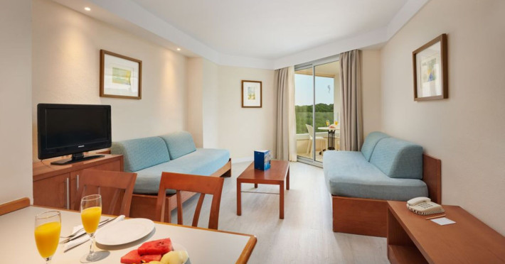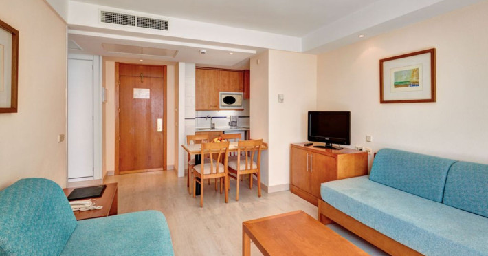 The aparthotel Aparthotel Hipotels Bahia Grande is located approximately 150 m from a beach. The nearest shops you can reach within around 100 m, a supermarket is just a few metres away from the hotel. There is a shuttle between the hotel and the airport (for a fee). On the beach are sun umbrellas available. The hotel is equipped with Wi-Fi as well as internet access. In the outdoor area you will find a pool (open all year), where you can rent pool towels for a fee. There is also a children's pool. Inside the hotel you can use an indoor pool. For very young guests, kid`s chairs can be provided. There is also a laundry service available at an additional cost to customers. If necessary, you can contact the medical centre (for a fee). If you want to explore the holiday region, you can use the car rental service close to the hotel (extra fee). At the reception, tickets are offered for excursions in the area. Euro/Master Card and Visa are accepted as means of payment. Due to its barrier-free facilities , such as barrier-free entrances, the hotel is also suitable for wheelchair users. Catering Breakfast is offered from the buffet. Dinner is also served as a buffet. Distances