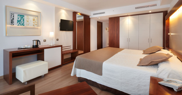 The Hipotels Cala Millor Park is a 4-star hotel with a unique personality. An all-inclusive hotel on the beautiful beach of Cala Millor, for families and with special prices to play golf in Cala Millor. . Located in Cala Millor, just 200 m. of the beach. . - Number of rooms: 205. Standard: Rooms with centralized air conditioning, bathroom with shower, magnifying mirror and hair dryer, amenities, TV, telephone, free WI-FI connection, safe and balcony. Minibar with charge. Junior Suite: Junior Suites with centralized air conditioning, bathroom with bathtub, magnifying mirror and hair dryer, amenities, TV, telephone, free WI-FI connection, coffee maker, safe and balcony or terrace. Minibar with charge. Possibility of Junior Suite Sea View. . - Ideal for families. - Celiacs: the establishment offers gluten-free dishes and/or products. This must be informed at the time of making your reservation. - People with reduced mobility: the establishment is equipped with a limited number of rooms, accesses and/or facilities adapted for people with reduced mobility. If you require an adapted room, you must make the express request and request confirmation. . RESTAURANTS AND BARS: Main restaurant: - Breakfast from 8:00 a.m. to 10:30 a.m. - Lunch from 1:00 p.m. to 2:30 p.m. - Dinner from 6:30 p.m. to 9:00 p.m. Pubs: - Snacks from 10:00 a.m. to 11:30 p.m. - Cake or pastries, cookies, coffee and tea from 4:00 p.m. to 6:00 p.m. DRINKS: - Lunch and dinner with national alcoholic and non-alcoholic drinks, such as soft drinks, various juices, beer, water and table wine. - National alcoholic and non-alcoholic drinks, such as soft drinks, various juices, beer, coffee and tea in the hotel bar from 10:00 a.m. to 12:00 a.m. ANIMATION: - Daytime entertainment with contests and games. - At night entertainment program with shows, live music and dancing. - Special for children: games and entertainment area. - Cribs on request. SPORTS AND ENTERTAINMENT: - Sports program with pool games, gymnastics and aerobics. - Volleyball. Little football. - Darts. Table tennis. - Gym (cardio). Sauna. NOTE: - Schedules subject to modifications by the establishment. . Free facilities: heated indoor pool with whirlpool, whirlpool, experience showers, ice fountain and gym. Facilities and services with charge: sauna, hammam and massage service. . Hipiclub for children from 4 to 12 years old with mini club and mini disco. . 2 swimming pools, 1 of them for children. Towel service upon deposit. . Buffet restaurant. Bar and pool bar.Datorita dinamicitatii domeniului disponibilitatea ofertelor se modifica de la un moment la altul. De aceea ofertele sunt valabile in limita locurilor disponibile. Agentia nu este responsabila pentru eventualele neconcordante care pot aparea intre informatiile privind tarifele si alte detalii din site si informatiile primite in agentie. In aceste cazuri vor avea prioritate, intotdeauna, informatiile primite in agentie.