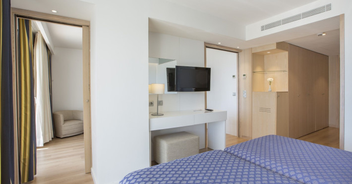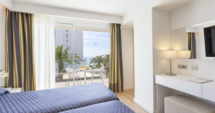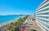 This hotel was built in 1964 and renovated in 2001, has a total of 126 rooms, of which 8 are singles and 118 doubles. The hotel is air-conditioned and has a reception hall with 3 lifts and reception area open 24 hours a day that offers a safe and currency exchange. It also has a bar, television and games room, TV room, a restaurant and with non-smoking area (outside terrace) and an Internet terminal. It may also make use of laundry service and medical care..This popular hotel is situated right in the centre next to a sandy beach, only separated from it by a promenade. Restaurants, shopping venues, bars, public transport and nightclubs are all within a short walk from the hotel..All of the comfortable rooms come with an en suite bathroom with a hairdryer. In addition, all rooms include a direct dial telephone and satellite TV. Moreover, they are air-conditioned and centrally heated..Guests may choose their breakfast, lunch and dinner from the individual buffets. It is possible to book either a half board or an all-inclusive stay..The hotel has a swimming pool, snack bar, lounge chairs and umbrellas. An additional fee you can use the pingpong tables. In addition, most athletes can also play tennis, a kilometer, the beach volleyball, boules and golf (three miles)..The hotel accepts MasterCard and VISA.Datorita dinamicitatii domeniului disponibilitatea ofertelor se modifica de la un moment la altul. De aceea ofertele sunt valabile in limita locurilor disponibile. Agentia nu este responsabila pentru eventualele neconcordante care pot aparea intre informatiile privind tarifele si alte detalii din site si informatiile primite in agentie. In aceste cazuri vor avea prioritate, intotdeauna, informatiile primite in agentie.