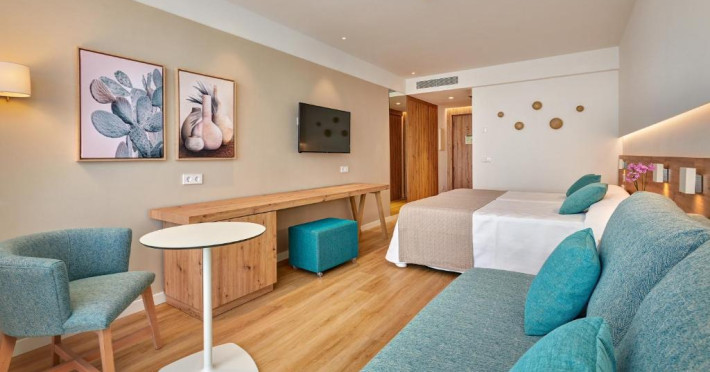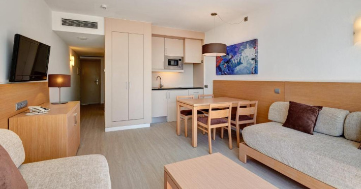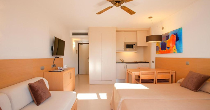 Toate apartamentele de la Hipotels Mediterraneo Club au podea cu parchet, aer condiționat și balcon mobilat, cu vedere la mare sau piscină. Fiecare apartament include zonă mare de living și de luat masa și bucătărie cu plită, cuptor cu microunde și frigider.