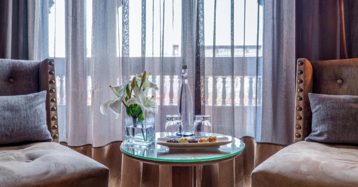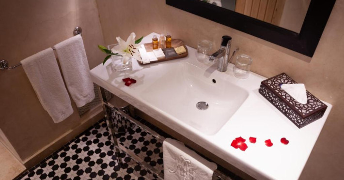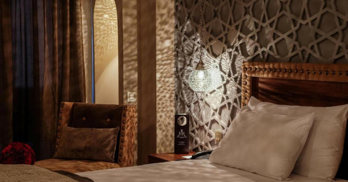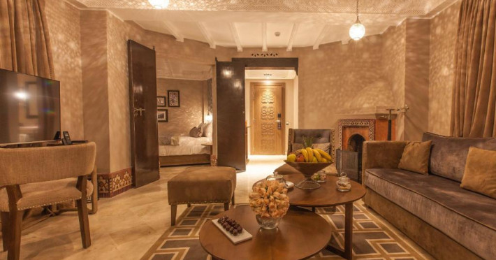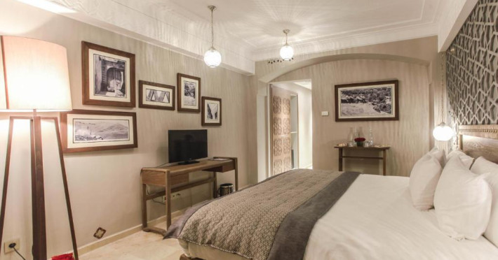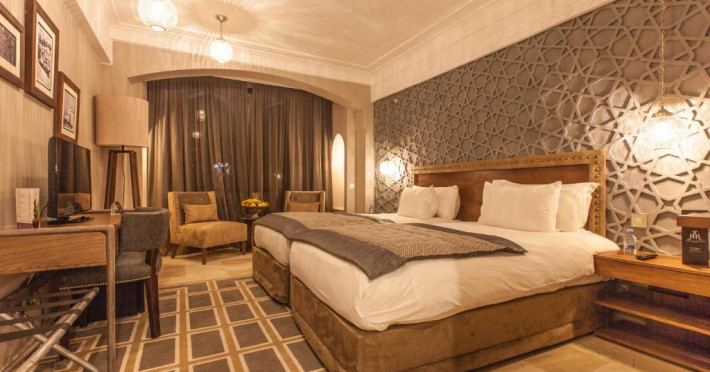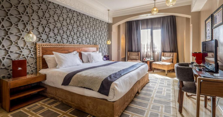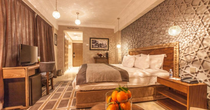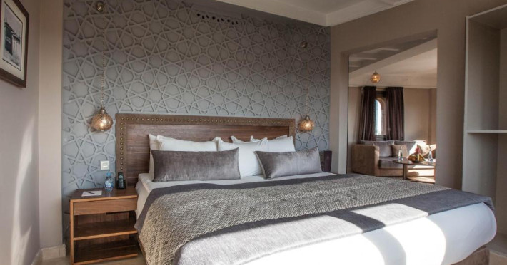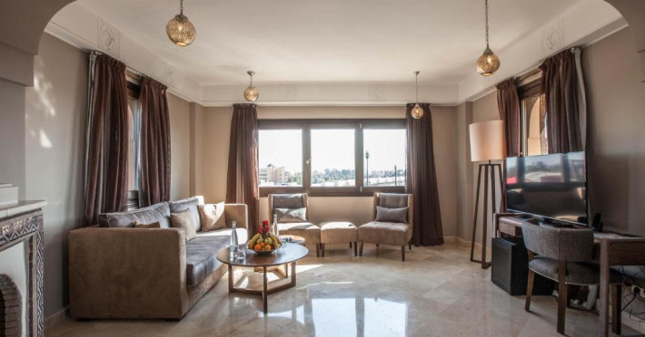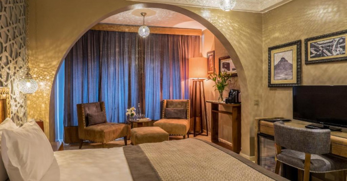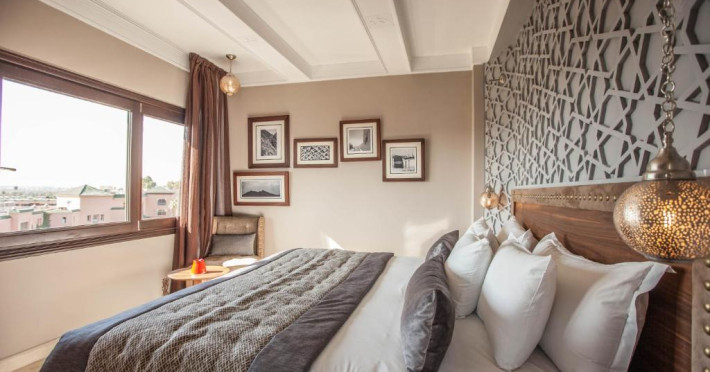 The hotel has panoramic terraces that are overlooking the Bab Jdid, one of the 9 gates to the city, the Agdal Gardens and the Atlas peaks.