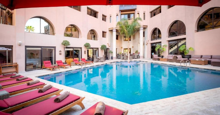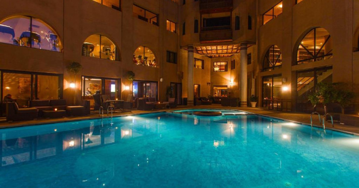 Hivernage Hotel & Spa is located just a short walk from the medina and souks of Marrakech. Each room is equipped with satellite TV and free Wi-Fi internet access.