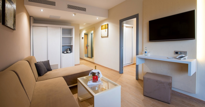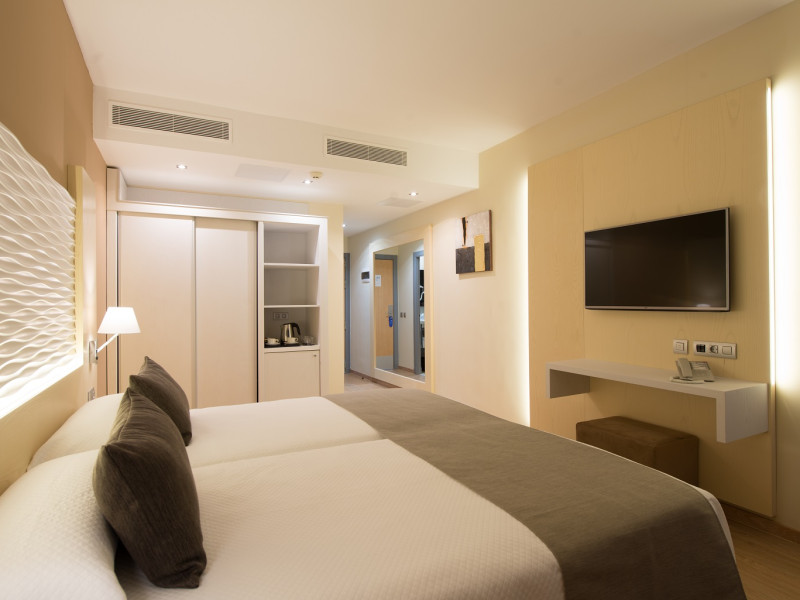 The apart hotel Suitehotel Playa del Ingles (Adults Only) is located in the vicinity of a beach. The city centre is also just a few steps away. In the vicinity a golf course provides entertainment for holidaymakers. The hotel is equipped with a 24h reception, Wi-Fi as well as parking spaces. In the outdoor area of the property you will find a garden as well as a heated pool. You can store your luggage in the hotel's storage room. The rooms are cleaned. If you want to explore the holiday region, you can use the car rental service close to the hotel. Due to its barrier-free facilities , such as barrier-free entrances, the hotel is also suitable for wheelchair users. Catering Breakfast is offered from the buffet. Lunch and dinner are also served from the buffet. Sports & Leisure A minigolf course at the hotel offers fun for the family during the most beautiful time of the year. At the hotel grounds there is also the possibility to play billiards. Also table tennis is offered at the hotel. A tennis court can also be used by hotel guests.The apart hotel Suitehotel Playa del Ingles (Adults Only) is located in the vicinity of a beach. The city centre is also just a few steps away. In the vicinity a golf course provides entertainment for holidaymakers. The hotel is equipped with a 24h reception, Wi-Fi as well as parking spaces. In the outdoor area of the property you will find a garden as well as a heated pool. You can store your luggage in the hotel's storage room. The rooms are cleaned. If you want to explore the holiday region, you can use the car rental service close to the hotel. Due to its barrier-free facilities , such as barrier-free entrances, the hotel is also suitable for wheelchair users. Catering Breakfast is offered from the buffet. Lunch and dinner are also served from the buffet. Sports & Leisure A minigolf course at the hotel offers fun for the family during the most beautiful time of the year. At the hotel grounds there is also the possibility to play billiards. Also table tennis is offered at the hotel. A tennis court can also be used by hotel guests.