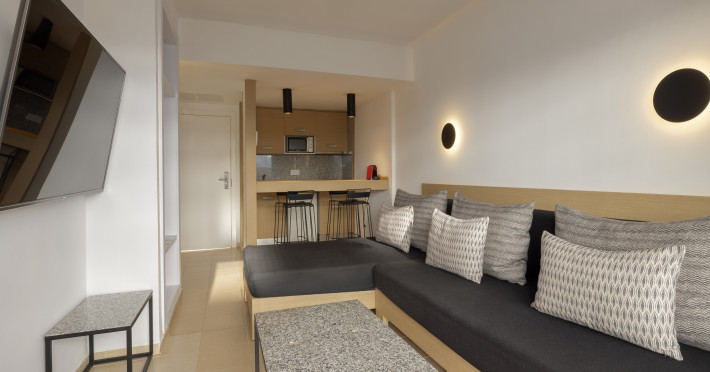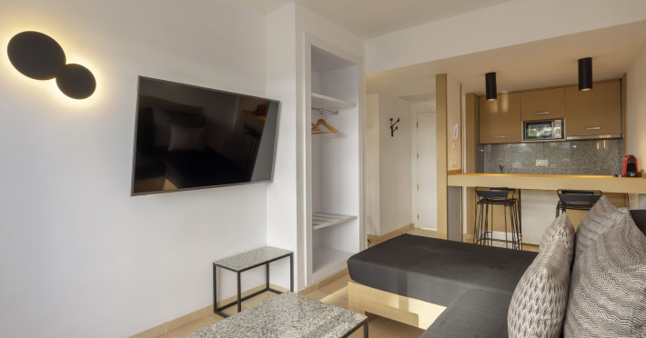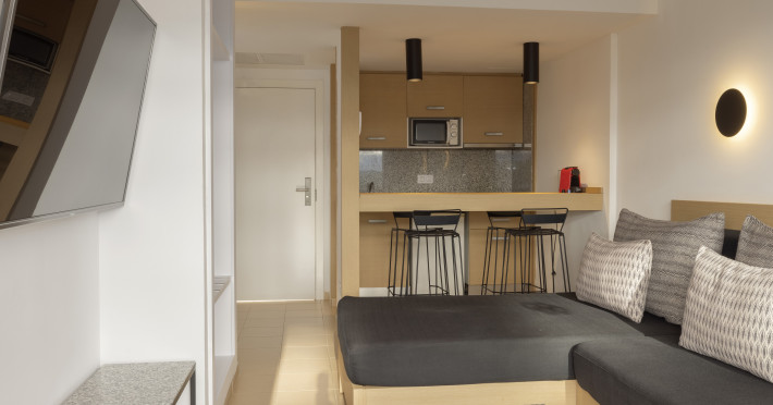 The apart hotel APARTHOTEL HM MARTINIQUE is located approx. 500 m from a sandy beach. There is a shuttle service between the hotel and the airport. In the surrounding a disco (approx. 300 m away) and a golf course (approx. 5 km) offer entertainment for holidaymakers. Near the beach there is a promenade where you can go for a stroll. The air-conditioned hotel has a 24h reception, a lobby bar as well as Wi-Fi. In the outdoor area of the property you will find a seasonally open, heated pool, where sun loungers and sun umbrellas are available for free. There is also a children's pool. Furthermore, outside you can find a terrace. Inside the hotel you can use an indoor pool. Your valuables can be stored in the hotel safe (extra fee). For very young guests, cots can also be provided. To clean your clothes there is a laundry service (extra fee). If necessary, you can contact the medical centre (for a fee). For conventions and other business meetings, the hotel offers a conference area. If you want to explore the holiday region, you can use the car rental service close to the hotel. In addition, the hotel sells tickets excursions. Due to its barrier-free facilities , such as barrier-free entrances, the hotel is also suitable for wheelchair users. Catering As catering services the hotel offers all-inclusive, half board and breakfast only. Breakfast is offered from the buffet. Lunch and dinner are also served from the buffet. For the meals, there are a buffet restaurant with terrace and the pool bar. Distances- Airport: approx. 30 km