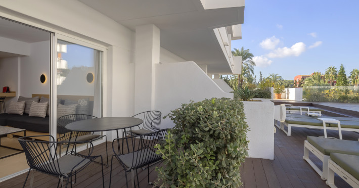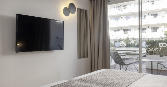 The apart hotel APARTHOTEL HM MARTINIQUE is located approx. 500 m from a sandy beach. There is a shuttle service between the hotel and the airport. In the surrounding a disco (approx. 300 m away) and a golf course (approx. 5 km) offer entertainment for holidaymakers. Near the beach there is a promenade where you can go for a stroll. The air-conditioned hotel has a 24h reception, a lobby bar as well as Wi-Fi. In the outdoor area of the property you will find a seasonally open, heated pool, where sun loungers and sun umbrellas are available for free. There is also a children's pool. Furthermore, outside you can find a terrace. Inside the hotel you can use an indoor pool. Your valuables can be stored in the hotel safe (extra fee). For very young guests, cots can also be provided. To clean your clothes there is a laundry service (extra fee). If necessary, you can contact the medical centre (for a fee). For conventions and other business meetings, the hotel offers a conference area. If you want to explore the holiday region, you can use the car rental service close to the hotel. In addition, the hotel sells tickets excursions. Due to its barrier-free facilities , such as barrier-free entrances, the hotel is also suitable for wheelchair users. Catering As catering services the hotel offers all-inclusive, half board and breakfast only. Breakfast is offered from the buffet. Lunch and dinner are also served from the buffet. For the meals, there are a buffet restaurant with terrace and the pool bar. Distances