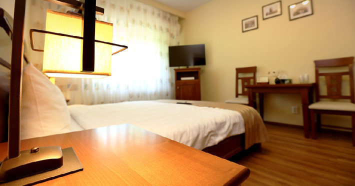 - Camere duble twin beds (suprafata totala 26 mp), camera cu 2 paturi twin (900/1900) si baie. Numarul maxim de persoane admise este 2 adulti si un copil sub12 ani. Spatiul din camera permite instalarea unui pat suplimentar,