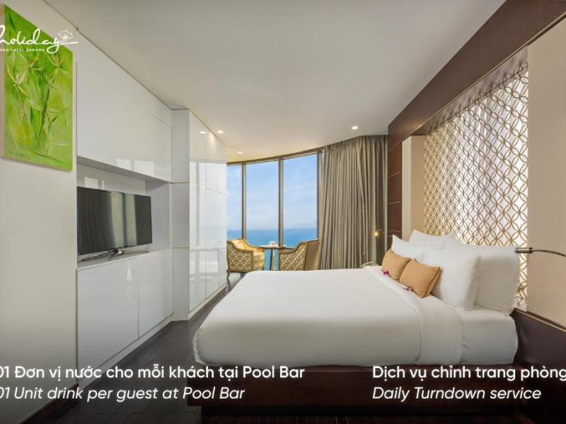Oferind o piscină pe acoperiș, un club pe plajă și un bar, Hotelul Holiday Beach Danang oferă camere mobilate elegant, care oferă vedere magnifică la ocean și la emblematica plajă My Khe. O gamă largă de opțiuni de luat masa sunt disponibile la cele 4 restaurante diferite, oferind delicatese, de la delicii internaționale la preparate tradiționale vietnameze.