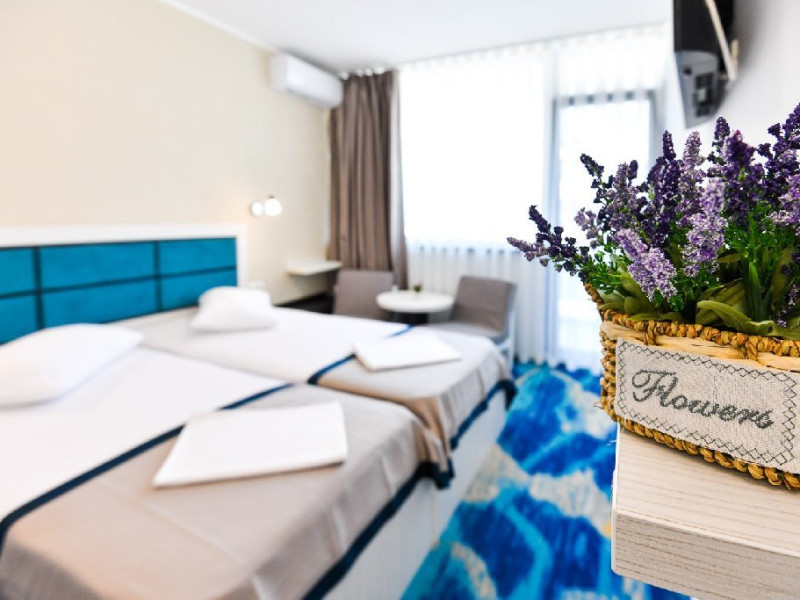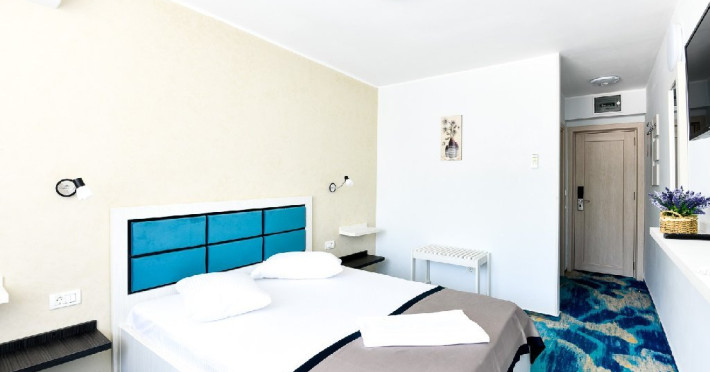 Hotelul Holiday Blue Neptun Olimp ofera servicii de tip all inclusive, cu mic-dejun, pranz si cina servite sub forma de bufet suedez.