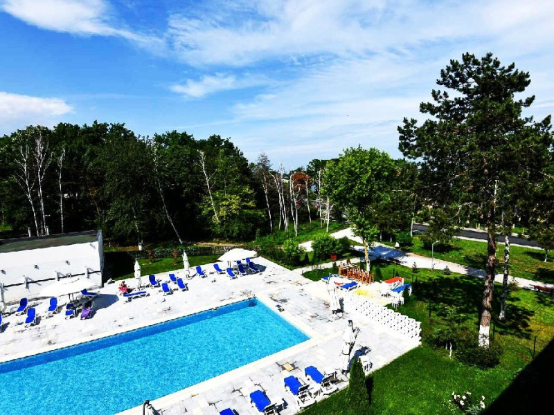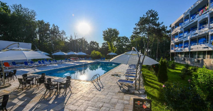 Hotelul Holiday Blue din statiunea Neptun Olimp ofera o piscina exterioara dotata cu sezlonguri si umbrele, disponibila gratuit pentru oaspeti in intervalul orar 08:00 - 19:00.