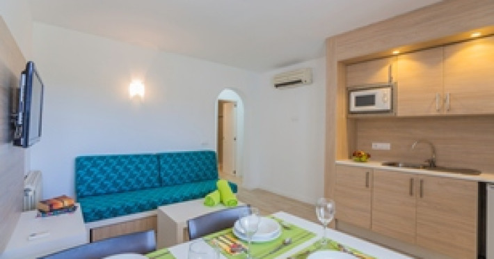 Around 400 m from a beach lies the apart hotel Holiday Center Santa Ponsa. The beach is patrolled by a lifeguard. Here, there are beach towels for a fee available. The air-conditioned hotel is equipped with a 24h reception (check-in is possible around the clock), a lobby, Wi-Fi, a shop, cash machine, showers and changing rooms, a first aid kit, parking spaces as well as a TV lounge with satellite TV. In the outdoor area of the property you will find a garden as well as a pool that is open seasonally (open all year), where you can rent pool towels for a fee and sun loungers and sun umbrellas are available for free. For children there is also a children's pool with a children`s slide. Furthermore, outside you can find a sun terrace. You can store your valuables in the safe (extra fee), and your luggage in the hotel`s storage roomn. For very young guests, kid`s chairs, highchairs and cots can be provided. For the smallest children prams can be rented in the hotel. There is also a laundry and ironing service. For your comfort there is a concierge service. If necessary, you can contact the medical centre at any time. Guests at the accommodation can get a wake-up call from the hotel personnel. If you want to explore the holiday region, you can use the car and motorbike rental service close to the hotel. At the hotel reception, tickets are offered for excursions in the area. Due to its barrier-free facilities , such as barrier-free entrances, wheelchair accessible rooms and wheelchair-accessible bathrooms, the hotel is also suitable for wheelchair users. Catering As catering services the hotel offers breakfast only and self-catering. Breakfast is offered continental or from the buffet. For the meals, there are a restaurant (gluten-free dishes) and a bar, the cafeteria as well as the pool bar. Sports & Leisure If you want to stay on the ball during your holidays, you`ll find the chance to play football. During your holiday you can also take part in aerobics courses. There is also the option to play billiards. Those who want to practice archery will find facilities for this at the hotel. With table football, table tennis and volleyball various other sports offer a lot of variety on holiday. For cyclists there is a bicycle rental as well as a storage room. Infants can be looked after in the hotel`s own baby club. For older children the care takes place in the children`s club. Junior hotel guests can also let off steam in the mini disco. In terms of adult entertainment, shows are organized in the evening and there is a games room available to use. Some of the sports are already included in the price. Additional information The hotel has a total of 120 rooms.Around 400 m from a beach lies the apart hotel Holiday Center Santa Ponsa. The beach is patrolled by a lifeguard. Here, there are beach towels for a fee available. The air-conditioned hotel is equipped with a 24h reception (check-in is possible around the clock), a lobby, Wi-Fi, a shop, cash machine, showers and changing rooms, a first aid kit, parking spaces as well as a TV lounge with satellite TV. In the outdoor area of the property you will find a garden as well as a pool that is open seasonally (open all year), where you can rent pool towels for a fee and sun loungers and sun umbrellas are available for free. For children there is also a children's pool with a children`s slide. Furthermore, outside you can find a sun terrace. You can store your valuables in the safe (extra fee), and your luggage in the hotel`s storage roomn. For very young guests, kid`s chairs, highchairs and cots can be provided. For the smallest children prams can be rented in the hotel. There is also a laundry and ironing service. For your comfort there is a concierge service. If necessary, you can contact the medical centre at any time. Guests at the accommodation can get a wake-up call from the hotel personnel. If you want to explore the holiday region, you can use the car and motorbike rental service close to the hotel. At the hotel reception, tickets are offered for excursions in the area. Due to its barrier-free facilities , such as barrier-free entrances, wheelchair accessible rooms and wheelchair-accessible bathrooms, the hotel is also suitable for wheelchair users. Catering As catering services the hotel offers breakfast only and self-catering. Breakfast is offered continental or from the buffet. For the meals, there are a restaurant (gluten-free dishes) and a bar, the cafeteria as well as the pool bar. Sports & Leisure If you want to stay on the ball during your holidays, you`ll find the chance to play football. During your holiday you can also take part in aerobics courses. There is also the option to play billiards. Those who want to practice archery will find facilities for this at the hotel. With table football, table tennis and volleyball various other sports offer a lot of variety on holiday. For cyclists there is a bicycle rental as well as a storage room. Infants can be looked after in the hotel`s own baby club. For older children the care takes place in the children`s club. Junior hotel guests can also let off steam in the mini disco. In terms of adult entertainment, shows are organized in the evening and there is a games room available to use. Some of the sports are already included in the price. Additional information The hotel has a total of 120 rooms.