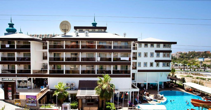 Holiday City este o proprietate de 4 stele care se află în Side (Antalya), la o distanță de 800 m de plaja cu nisip amenajată și oferă piscină în aer liber, cu șezlonguri și umbrele de soare, precum și un centru spa care asigură servicii pentru un sejur extrem de relaxant. Proprietatea are servicii de recepție cu program non - stop și închirieri auto. Se oferă acces gratuit la internet Wi-fi în spațiile publice. Parcarea este disponibilă la proprietate gratuit.
