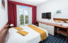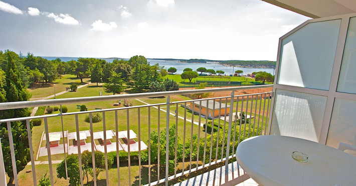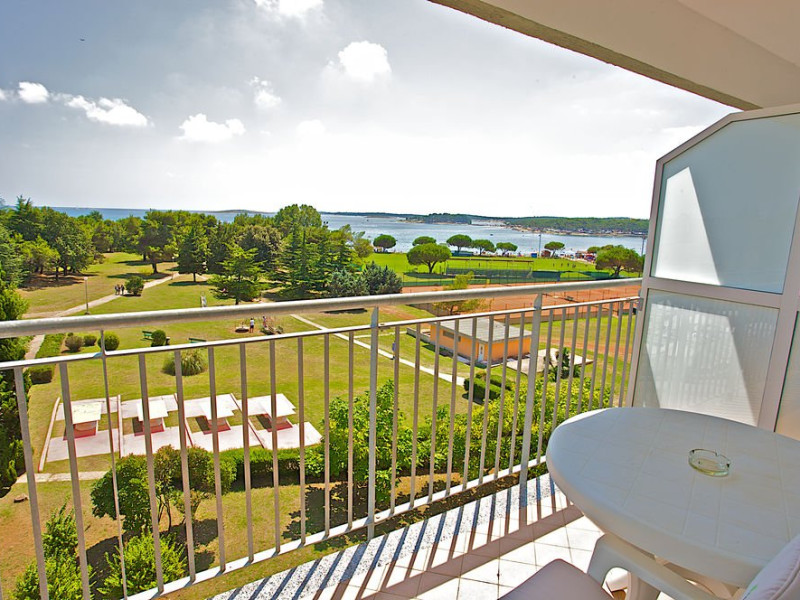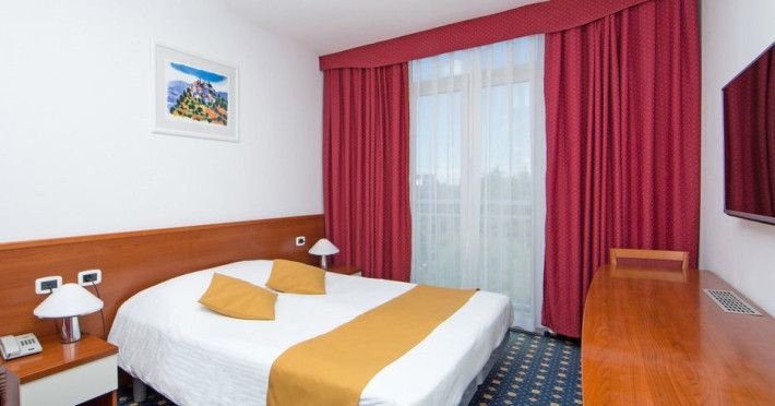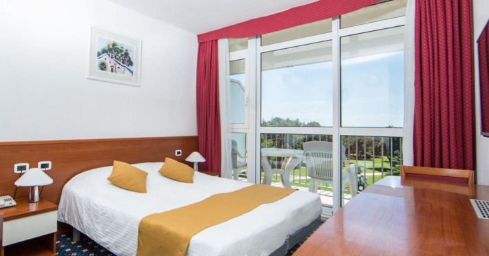 Dotari camere: 192 de camere dotate cu aer conditionat, telefon, TV, frigider, baie cu cada sau dus, uscator de par. Camerele cu vedere la mare au un balcon cu o vedere frumoas la Golful Medulin.