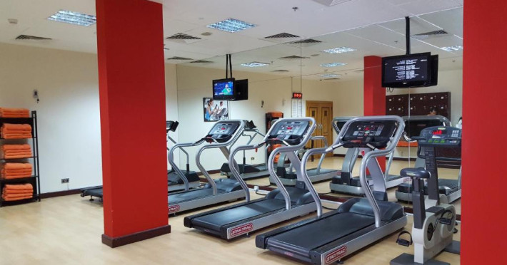 O sală de fitness cu echipamente necesare pentru o gamă variată de exerciții fizice este la dispoziția celor interesați.