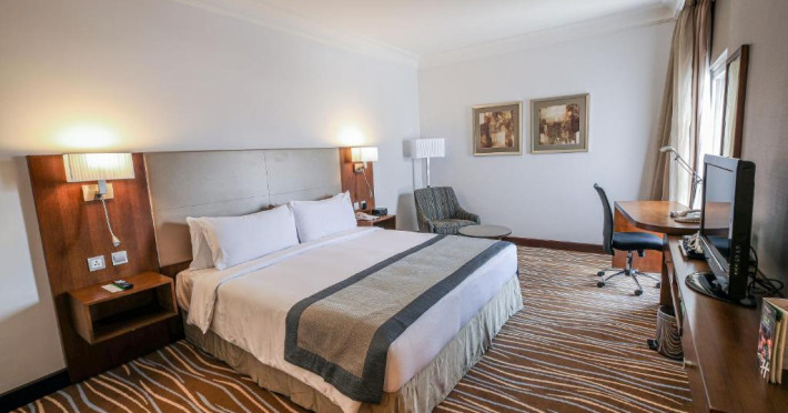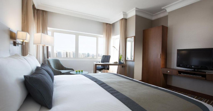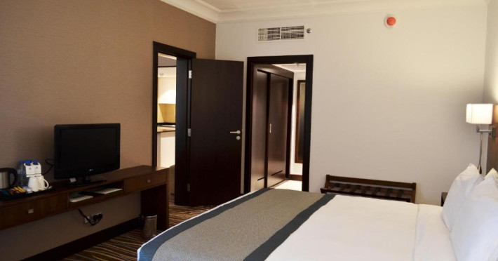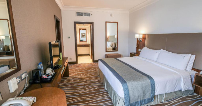 Camerele de la Holiday Inn Abu Dhabi Downtown sunt dotate cu aer condiționat, Tv cu canale prin satelit și seif. Fiecare cameră dispune de un aparat pentru preparare cafea sau ceai, cană-fierbător și minibar. Oaspeții pot solicita serviciul de room service pentru a servi masa sau diverse băuturi. În camere există baie cu foehn și articole de toaletă gratuite. Oaspeții au acces gratuit la serviciul Wi-fi în camere. Unele camere au vedere oraș. Curățenia in cameră se face zilnic.