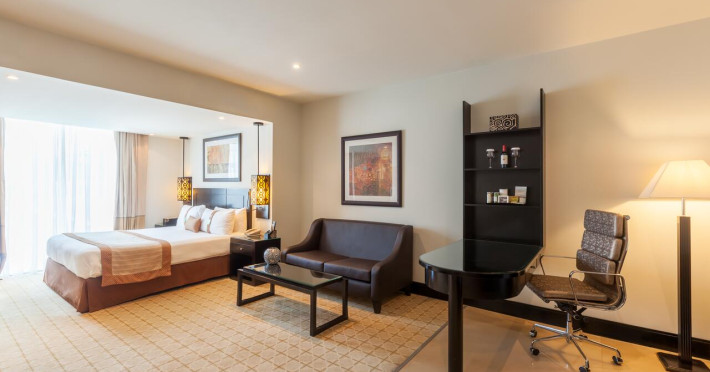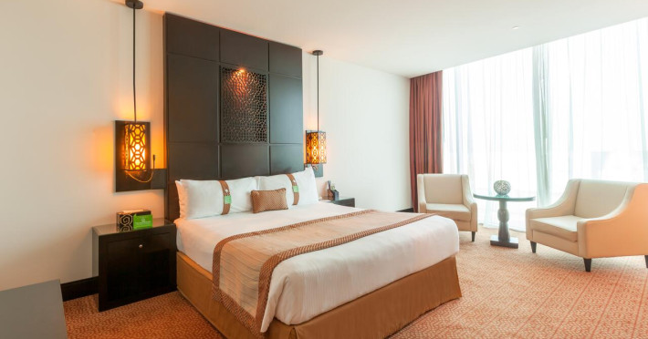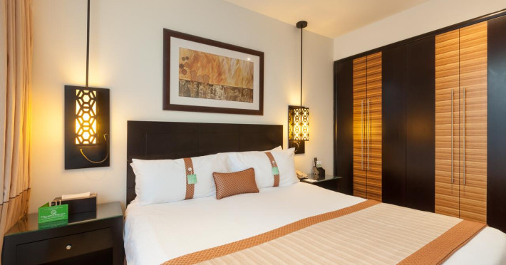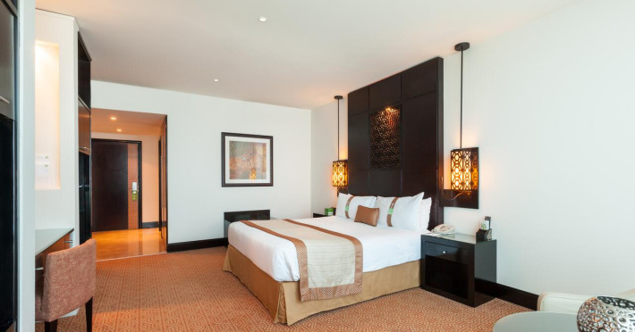 Sunt disponibile 309 camere. Unele camere au balcon cu vedere la grădină sau la piscină. Camerele confortabile de la Holiday Inn Al Barsha au pardoseală de gresie/ marmură, aer condiționat, Tv cu canale prin satelit și seif. Fiecare cameră dispune de un aparat pentru preparare cafea sau ceai, cană-fierbător și minibar. Oaspeții pot solicita serviciul de room service pentru a servi masa sau diverse băuturi. În camere există baie cu cadă sau duș ce are în dotare foehn și articole de toaletă gratuite. Oaspeții au acces gratuit la serviciul Wi-fi în camere. Curățenia in cameră se face zilnic. Anumite camere au zonă de relaxare cu canapea și cadă cu hidromasaj care asigură un plus de confort și răsfăț. Fiecare unitate de cazare are frigider. De asemenea, este disponibilă o zonă de luat masa. Proprietatea oferă camere pentru familie cu o suprafață mai mare și un număr mai mare de paturi față de cele standard.