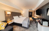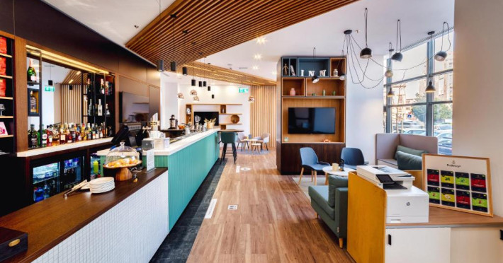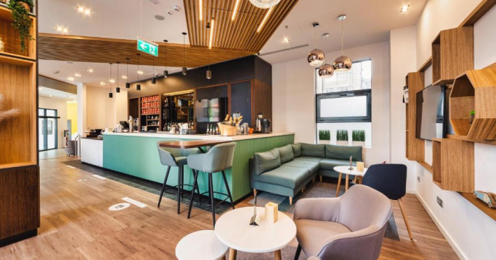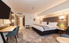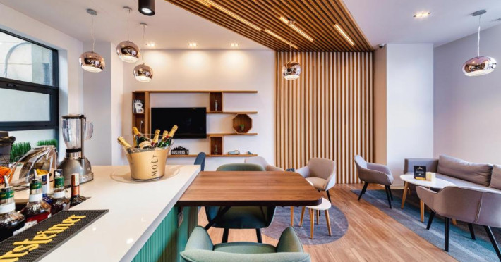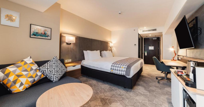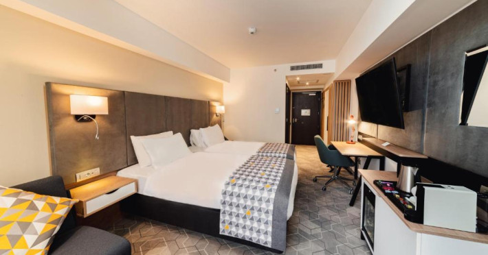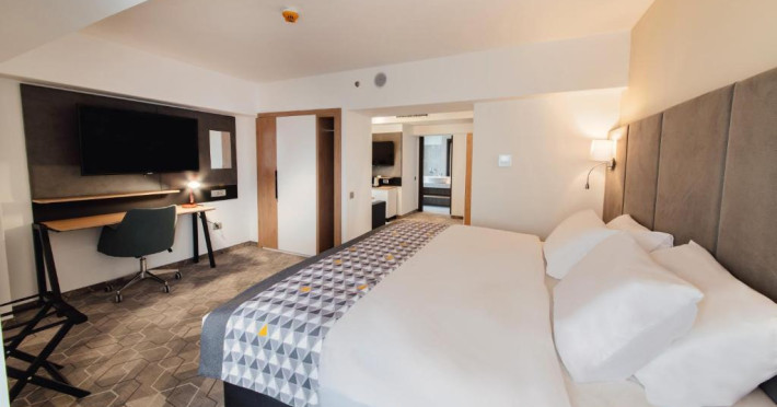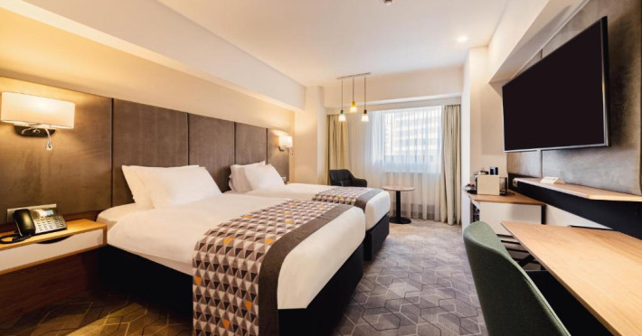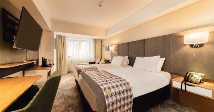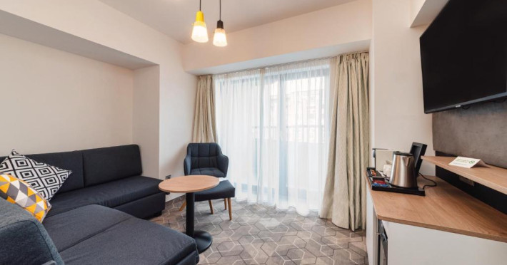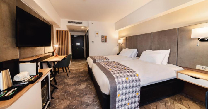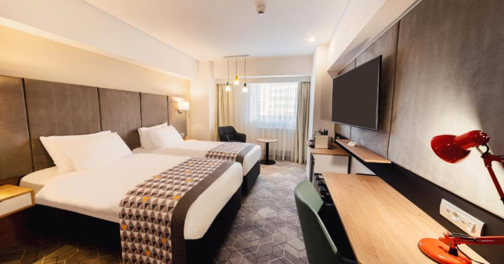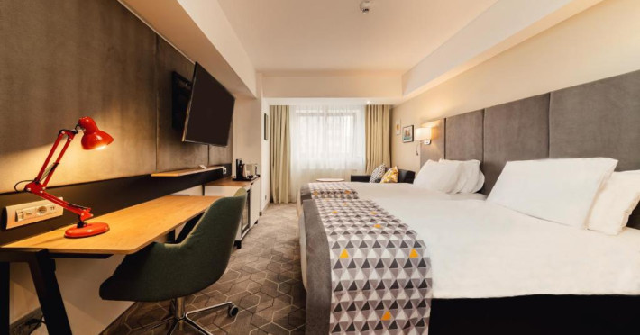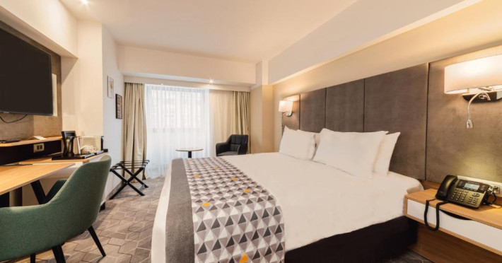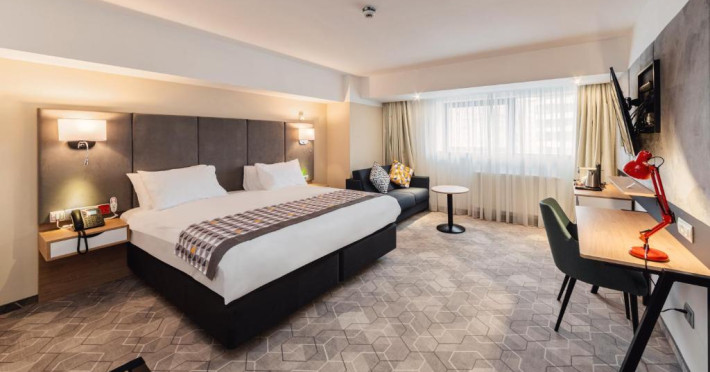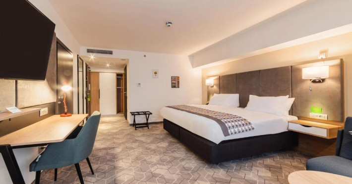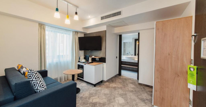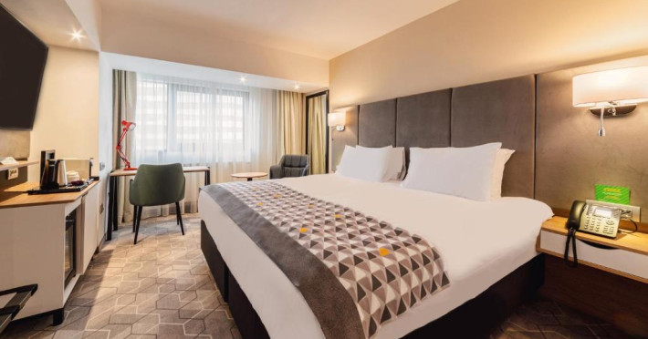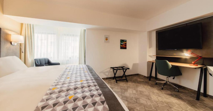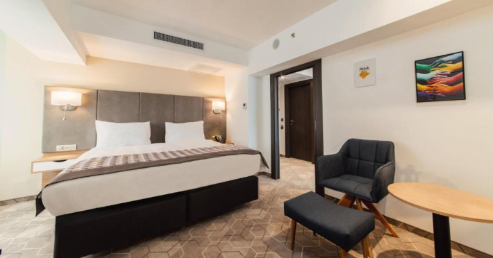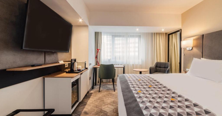 Acesta hotel modern de 4 stele beneficiază de o locație centrală, in inima zonei financiare și de afaceri, fiind destinat oamenilor de afaceri care doresc să profite din plin de sejurul lor in Bucuresti. După o zi plină, oaspeții se pot relaxa in sala de gimnastică Up Fit sau se pot bucura de delicatesele locale și internaționale oferite de Happy Inn. Oaspeții pot savura băuturi la barul Joy Café. In apropiere se găsesc bănci si birouri, precum si zona frumoasă din jurul stadionului si parcului National. De asemenea, oaspeții pot găsi numeroase oportunităti de suveniruri si cumpărături la doar cateva minute, in Bucuresti Mall si Unirea Shopping Center. Hotelul este la cateva minute de mers cu masina de Palatul Parlamentului si Centrul International de Conferinte, a 2-a cea mai mare clădire din lume ca suprafată, precum si la doar 25 de minute de Aeroportul International Henri Coandă si Aeroportul Băneasa.