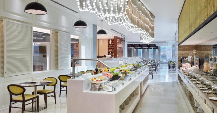 Răsfățați-vă cu delicii culinare la restaurantul hotelului, deschis toată ziua, Sirocco, unde puteți savura un