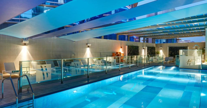 După o zi productivă, relaxați-vă și relaxați-vă la piscina in aer liber cu temperatură controlată sau