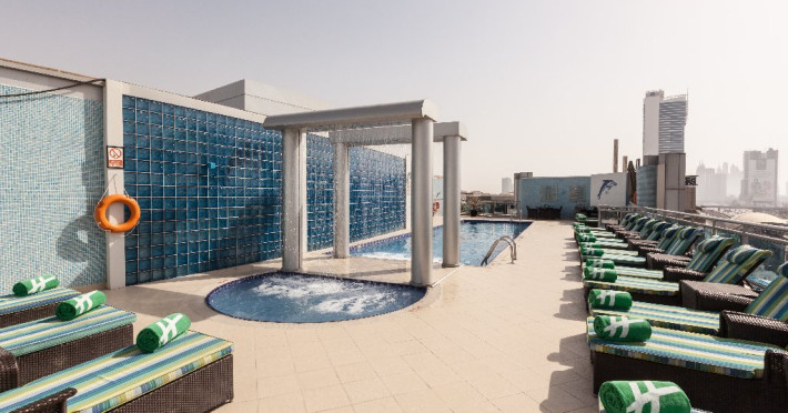 - Piscina exterioara situata pe rooftop, cu vedere spre Burj Al Arab