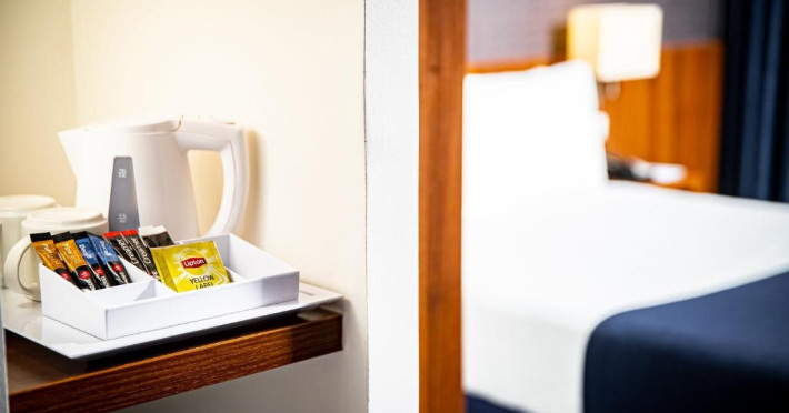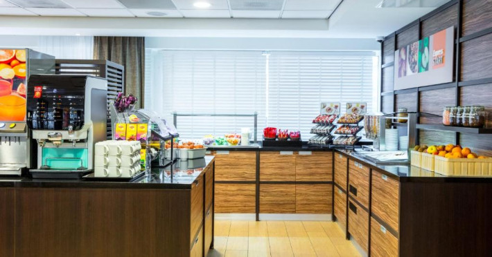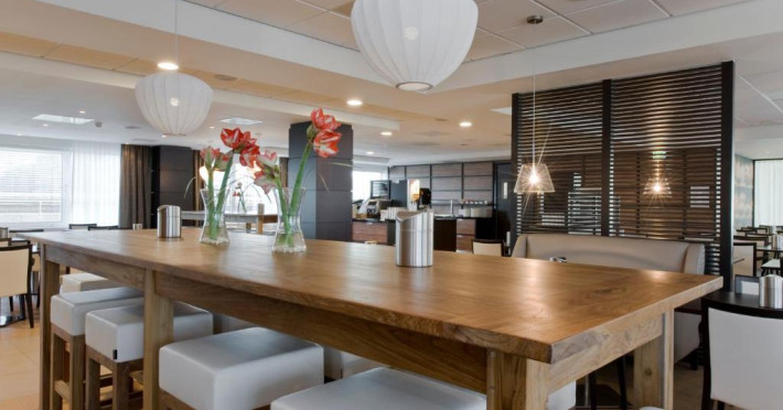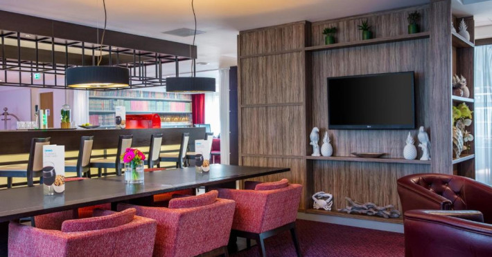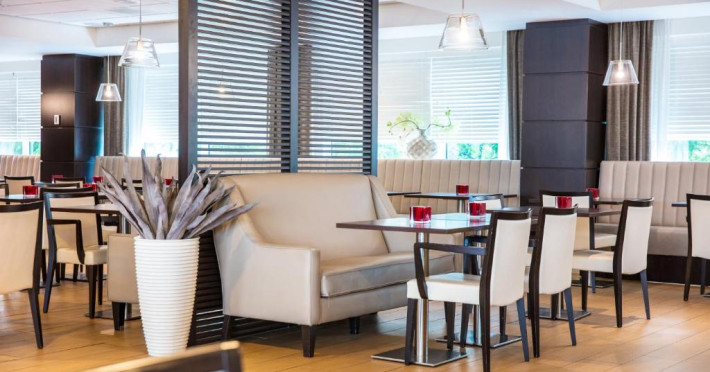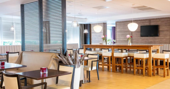 Oaspeții se pot bucura de o băutură de la bar, iar gustări, sandvișuri și băuturi pot fi cumpărate de la automatele din hol. De asemenea, oaspetii pot lua masa la unul dintre restaurantele din jurul hotelului.