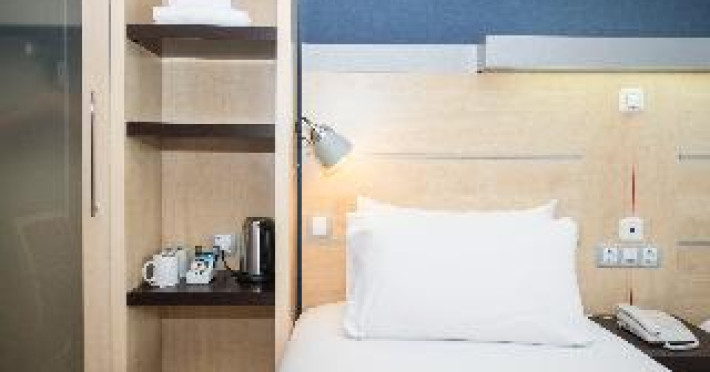 Friendly Barcelona hotel with free WiFi, included breakfast and easy access to the beach and city sights Holiday Inn Express® Barcelona City 22@ hotel is located in the hip 22@Barcelona business zone, formerly an industrial district of Poblenou. Llacuna Metro Station is four minutes’ walk from the hotel. The B-10, also known as Ronda Litoral, Coastal Ring Road is minutes away by car and on-site parking is available. It’s a 20-minute drive to Barcelona El Prat Airport (BCN). Unwind on Mar Bella Beach, a short stroll from the hotel. On the nearby Rambla del Poblenou, seafood dishes are popular. Barcelona attractions, like the soaring Sagrada Familia and imaginative Park Güell, are with easy reach. Looking for some retail therapy? Diagonal Mar mall is less than 10 minutes away by taxi. The hotel location in the 22@ innovation and financial district makes it an ideal base for business travellers. For events, it's a 10-minute drive to the CCIB convention centre. Guests can take advantage of the hotel's 24-hour Business Centre and fully equipped meeting room for up to 30 people. Bright, colourful guest rooms offer free WiFi to keep you connected. Get set for the day with an Express Start Breakfast buffet of continental items. In the evening, simply step outside the door to experience Barcelona's lively dining scene.Friendly Barcelona hotel with free WiFi, included breakfast and easy access to the beach and city sights Holiday Inn Express® Barcelona City 22@ hotel is located in the hip 22@Barcelona business zone, formerly an industrial district of Poblenou. Llacuna Metro Station is four minutes’ walk from the hotel. The B-10, also known as Ronda Litoral, Coastal Ring Road is minutes away by car and on-site parking is available. It’s a 20-minute drive to Barcelona El Prat Airport (BCN). Unwind on Mar Bella Beach, a short stroll from the hotel. On the nearby Rambla del Poblenou, seafood dishes are popular. Barcelona attractions, like the soaring Sagrada Familia and imaginative Park Güell, are with easy reach. Looking for some retail therapy? Diagonal Mar mall is less than 10 minutes away by taxi. The hotel location in the 22@ innovation and financial district makes it an ideal base for business travellers. For events, it's a 10-minute drive to the CCIB convention centre. Guests can take advantage of the hotel's 24-hour Business Centre and fully equipped meeting room for up to 30 people. Bright, colourful guest rooms offer free WiFi to keep you connected. Get set for the day with an Express Start Breakfast buffet of continental items. In the evening, simply step outside the door to experience Barcelona's lively dining scene.