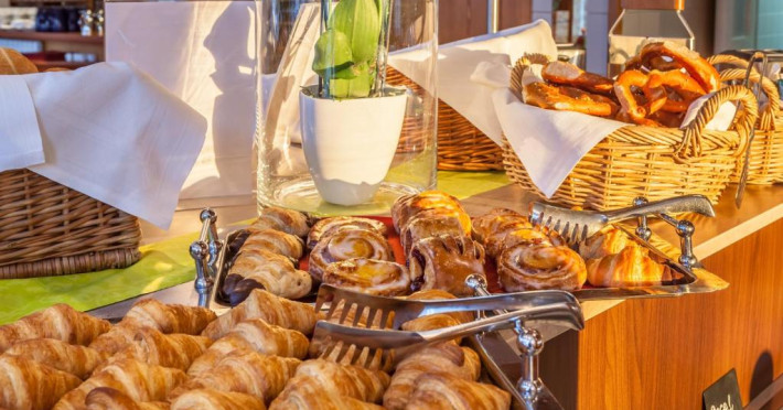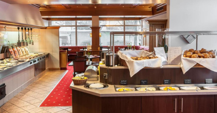 Restaurantul Kupferkessel servește mancăruri germane și internaționale. Cocktailuri colorate și bere germană pot fi savurate in barul din hol sau pe terasa din grădină a hotelului.