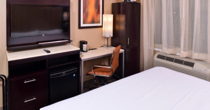 Holiday Inn New York - Times Square se află la 500 m de Times Square și de Madison Square Garden. Cel mai apropiat aeroport este Aeroportul La Guardia, situat la 10 km de Holiday Inn New York - Times Square South.