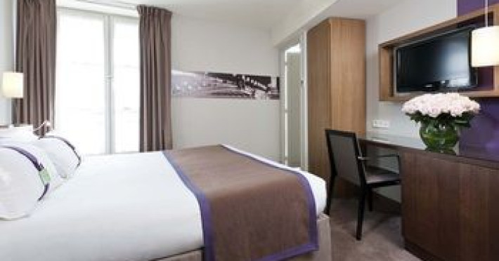 Property LocationWith a stay at Holiday Inn Paris Elysees, an IHG Hotel, youll be centrally located in Paris, within a 5-minute drive of Champs-Elysees and Palais des Congres de Paris. This 4-star hotel is 0.8 mi (1.2 km) from Palais Garnier and 1 mi (1.5 km) from Galeries Lafayette.RoomsMake yourself at home in one of the 43 guestrooms featuring minibars and flat-screen televisions. Complimentary wired and wireless Internet access keeps you connected, and satellite programming provides entertainment. Private bathrooms with bathtubs or showers feature rainfall showerheads and complimentary toiletries. Conveniences include laptop-compatible safes and desks, and housekeeping is provided daily.DiningGrab a bite from the snack bar/deli, or stay in and take advantage of the hotels room service (during limited hours). Quench your thirst with your favorite drink at the bar/lounge. Buffet breakfasts are served on weekdays from 7:00 AM to 10:00 AM and on weekends from 7:30 AM to 10:30 AM for a fee.Rec, Spa, Premium AmenitiesMake use of convenient amenities such as complimentary wireless Internet access, concierge services, and a television in a common area.Business, Other AmenitiesFeatured amenities include complimentary wired Internet access, a business center, and complimentary newspapers in the lobby.Datorita dinamicitatii domeniului disponibilitatea ofertelor se modifica de la un moment la altul. De aceea ofertele sunt valabile in limita locurilor disponibile. Agentia nu este responsabila pentru eventualele neconcordante care pot aparea intre informatiile privind tarifele si alte detalii din site si informatiile primite in agentie. In aceste cazuri vor avea prioritate, intotdeauna, informatiile primite in agentie.