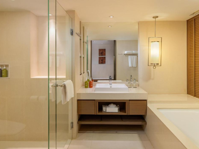 Toate camerele cu design modern și contemporan de la Holiday Inn Resort Phuket au TV cu ecran plat și baie privată cu duș cu efect de ploaie.