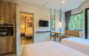 The hotel Holiday Style Ao Nang Beach Resort is located approximately 200 m from a public sandy beach and about 300 m from the sea. The nearest restaurants and bars can be found within 200 m. The old town is around 20 km away. The nearest shops you can reach within around 300 m, a supermarket is around 2 km away. There is a shuttle service between the hotel and the airport. On the beach are beach towels available. The seasonally air-conditioned, GPS-verified hotel has a 24h reception, a lobby, Wi-Fi, internet access, 3 lifts, a hairdresser, a first aid kit, parking spaces (limited) as well as a TV lounge with satellite TV. In the outdoor area you will find a garden as well as a supervised pool (open all year), where sun loungers, sun umbrellas and pool towels are available for free. You can store your valuables in the safe, and your luggage in the hotel`s storage room. For very young guests, kid`s chairs, highchairs and cots can be provided. There is also an ironing service available at an additional cost to customers. Ironing equipment can also be rented at the hotel for a fee. For your comfort the hotel page will ensure you are looked after. If necessary, you can contact the medical centre. Guests at the accommodation can get a wake-up call from the hotel personnel. The energy supply is 220 Volts. For guests on their honeymoon, the hotel has special offers such as a romantically-decorated room, sparkling wine, a basket of fruit or flowers in the room. In your hotel, a lot of focus is placed on sustainability. This includes the hotel`s own recycling bins, the provision of soap and shampoo dispensers and environmentally-friendly cleaning. Euro/Master Card and Visa are accepted as means of payment. Due to its barrier-free facilities , such as a sliding door in the entrance area, a hotel door that can be opened manually, barrier-free entrances, wheelchair accessible rooms, a wheelchair accessible lift and wheelchair-accessible bathrooms, the hotel is also suitable for wheelchair users. Catering As catering services the hotel offers half board, full board and breakfast only. Breakfast is offered American, from the buffet or à la carte. Lunch and dinner are also served as a set meal or à la carte with starters, salads and desserts (extras on request and at extra cost). Half board includes breakfast, lunch and dinner. When booking half board plus, selected imported spirits (limited) are included. All Inclusive Light includes coffee & tea, beer, wine as well as local and international alcoholic beverages. When booking all-inclusive, one welcome drink and - for an extra fee - one meal in the à la carte restaurant are included. As part of the all-inclusive service, international alcoholic beverages (unlimited) as well as international alcoholic beverages (limited) are available at no extra charge. For the meals, there are a restaurant (vegetarian dishes) and the pool bar. The drinks menu of the hotel includes water, soft drinks, coffee and tea, beer and wine. Alcoholic beverages are not served in the hotel. A picnic bench can be used by guests for self-catering. Distances- Discotheque: approximately at 1 km