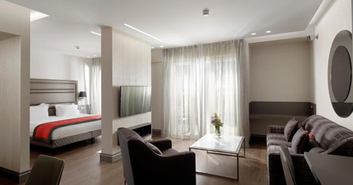 Acest hotel se află aproape de 2 artere principale din centrul Atenei, langă statii de transport in comun, facilitand clientilor călătoriile lor către situri antice, centre comerciale si plaje. De asemenea, este convenabil situat fată de aeroportul international Atena si de portul Pireu. Toate suitele au aer conditionat si includ o cameră de zi spatioasă si un dormitor confortabil, precum si acces la internet, geamuri duble si facilitătile enumerate.